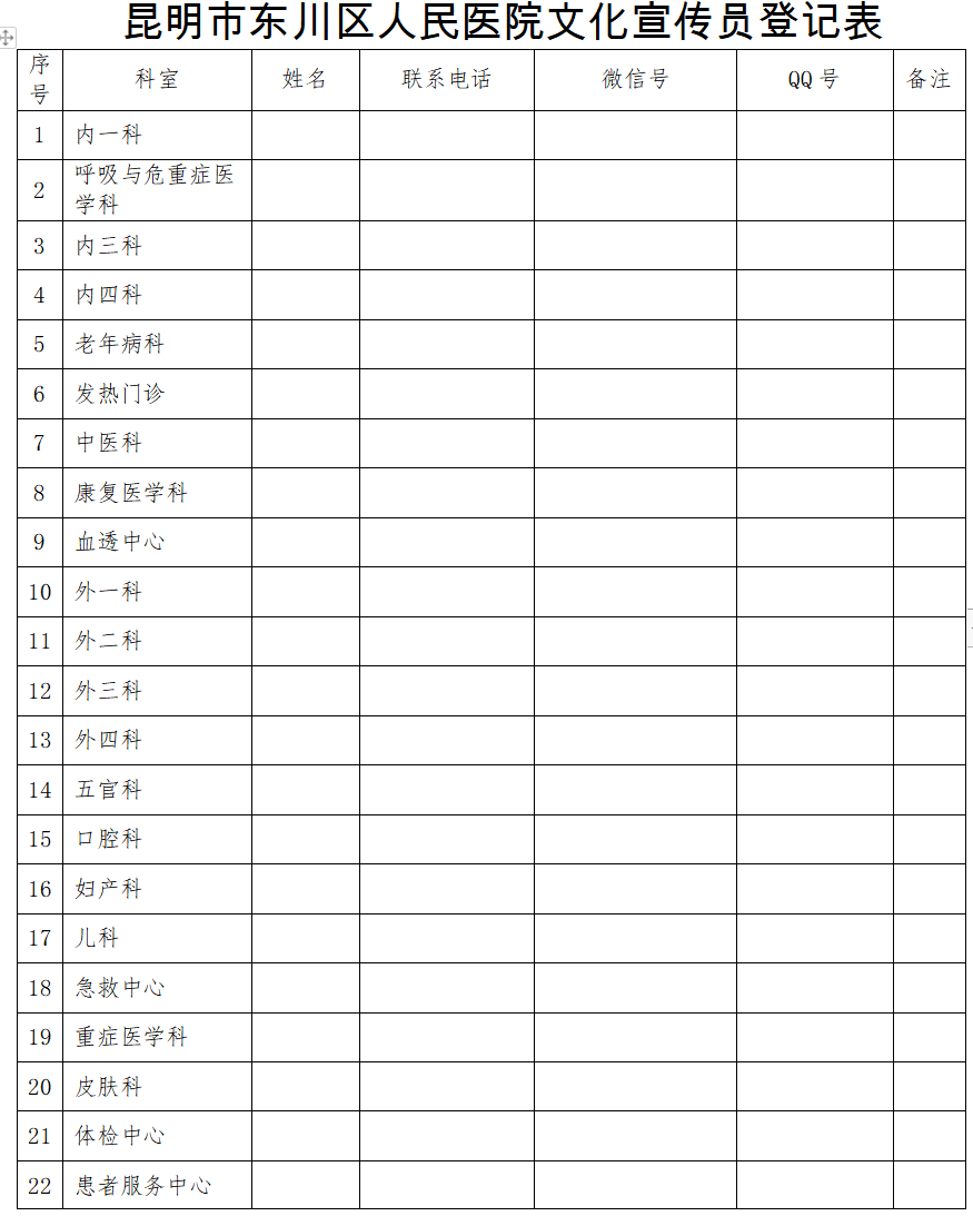 2.昆明市東川區(qū)人民醫(yī)院文化宣傳員登記表